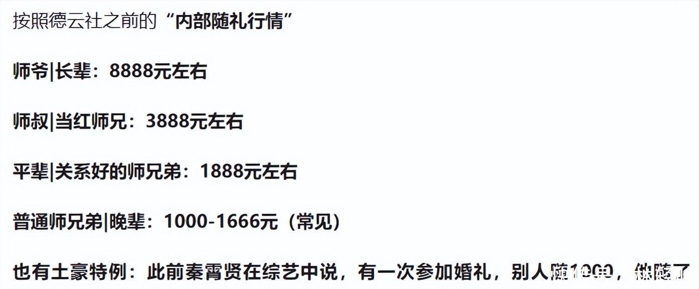 更令观众啧啧称奇的是,依据德云社沿袭多年的内部礼俗,哪怕与陶阳交集有限的同门师兄弟,所备贺仪亦须不低于四位数人民币。
